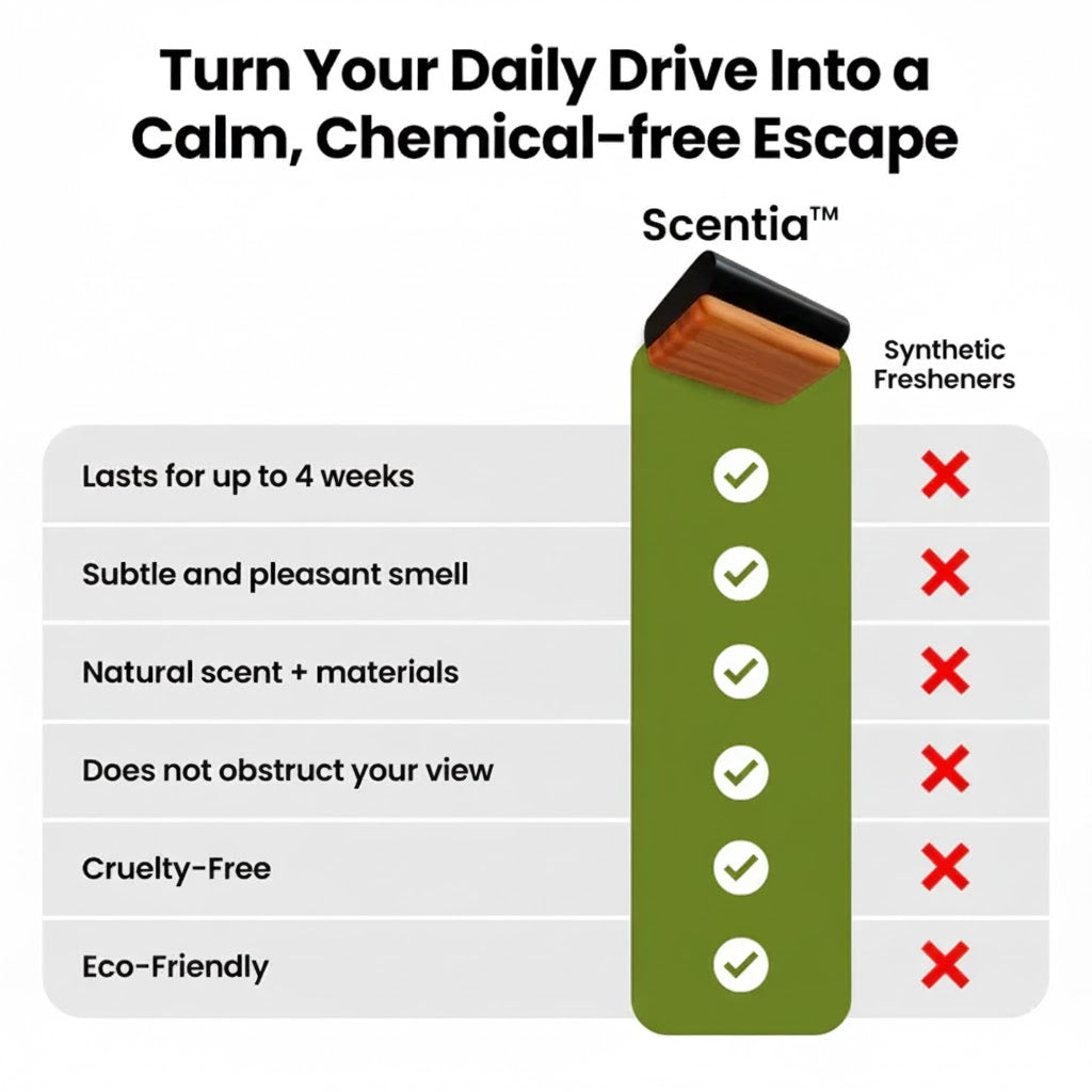Most fresheners look cheap and quit working after a few days. Scentia uses premium, natural materials to deliver lasting results with a design that actually enhances your interior.